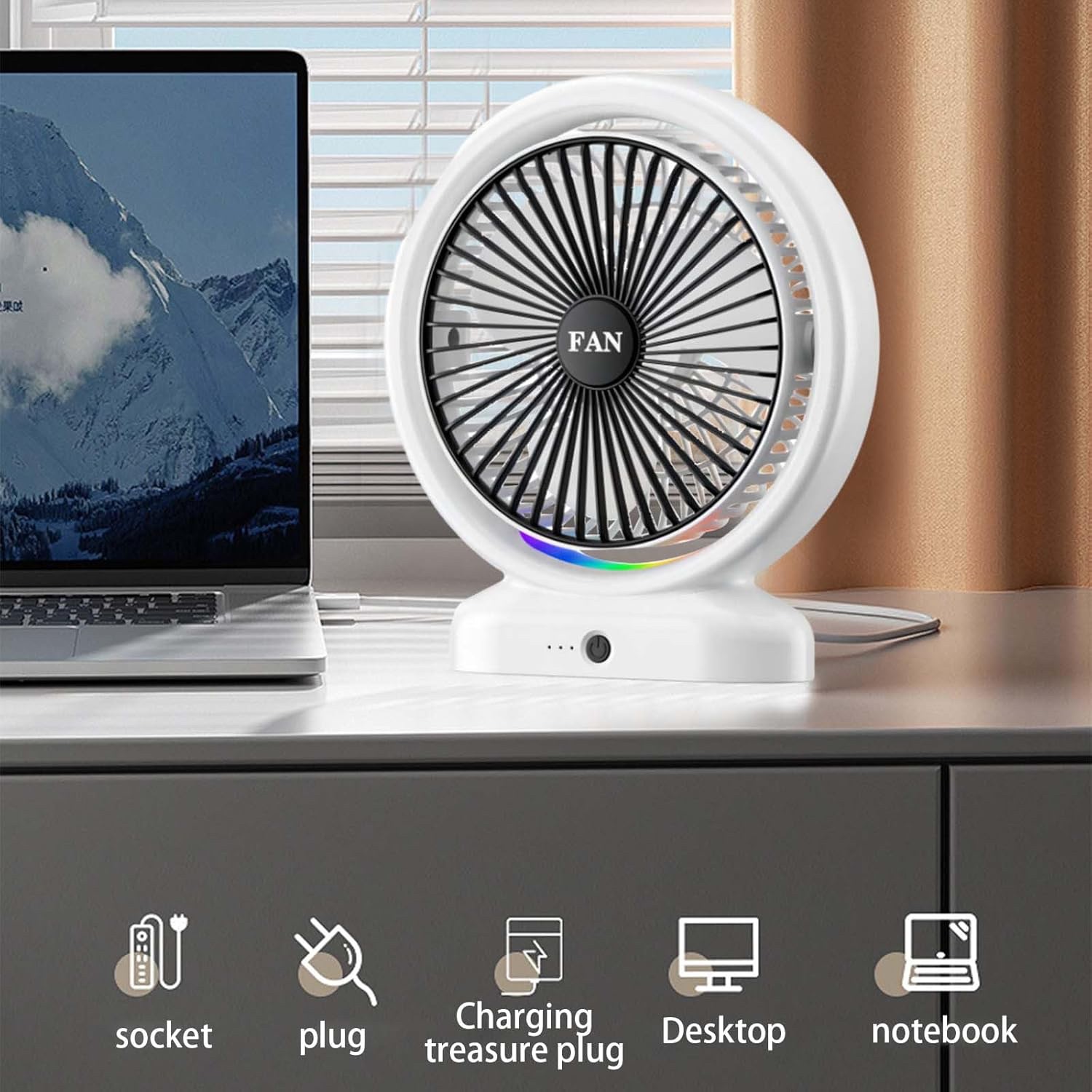 3 Speeds Mini Desktop Fan, Rechargeable Battery Powered Fan with Colorful LED lights, Portable USB Quiet Personals Fan, Suitable for Home Office Travel Camping Outdoor Indoor, Black Ro