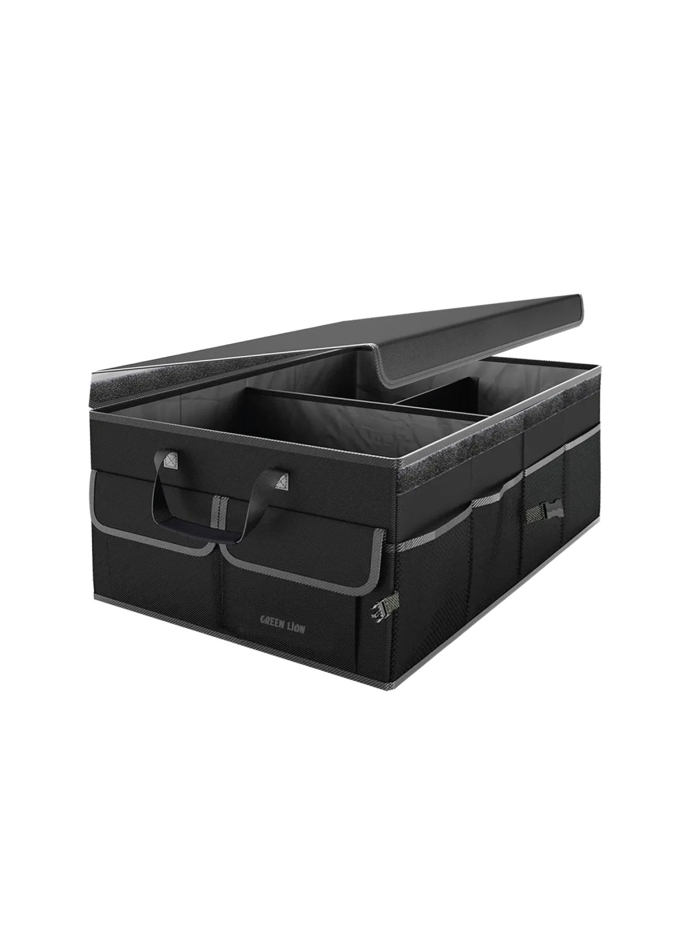 The organizer is equipped with sturdy handles for easy lifting and carrying, while mesh pockets provide additional space for smaller or frequently used items. Whether you’re using it for daily trips, long road trips, or just to keep your trunk tidy, the Green Lion Car Trunk Organizer is a practical and reliable solution for your storage needs.