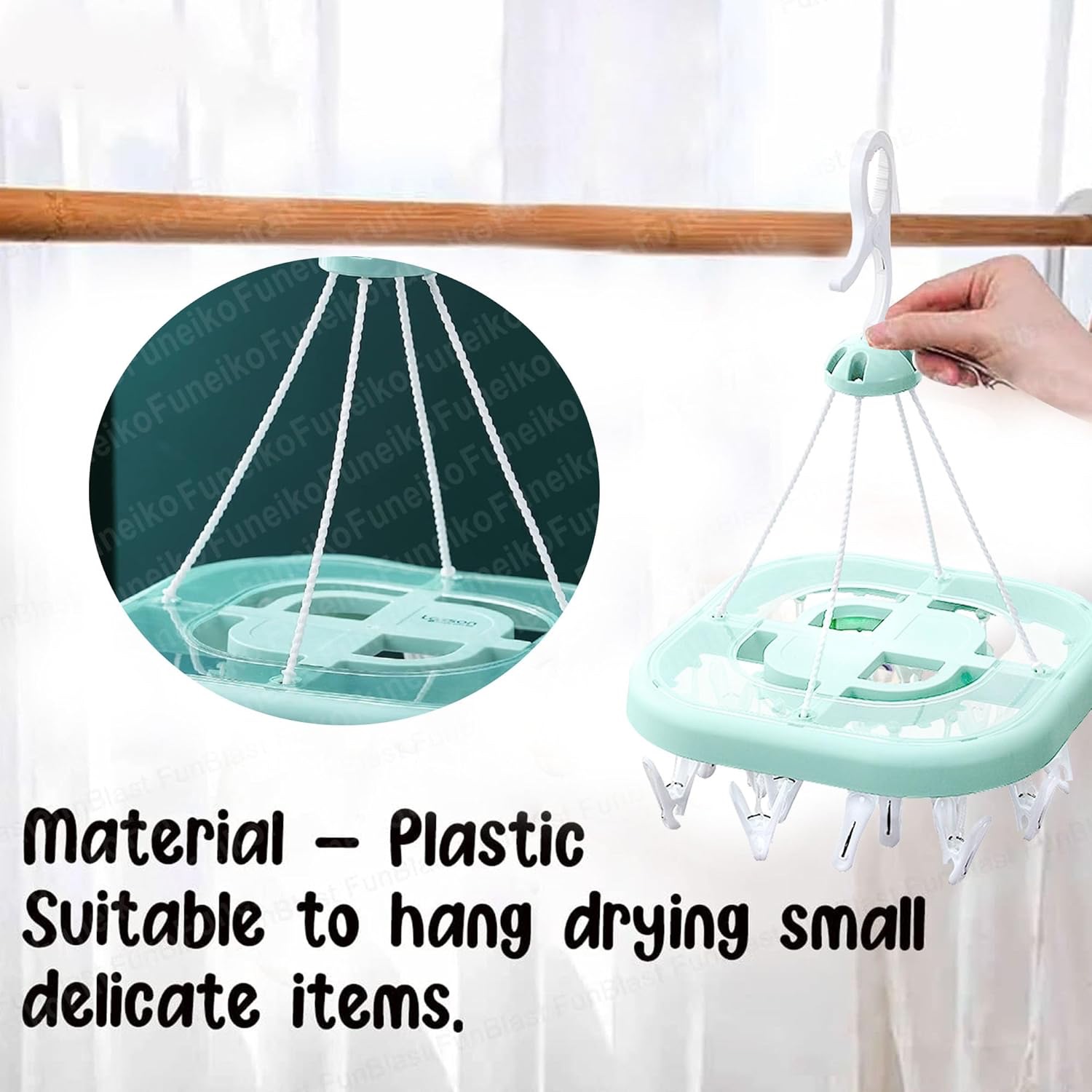 Clips Hanger for Clothes Drying, Plastic Square Shape Cloth Drying Hanging Hanger with 24 Clips/Pegs, Baby Clothes Hanger, Clips for Cloth Hanging, Cloth Clips lc