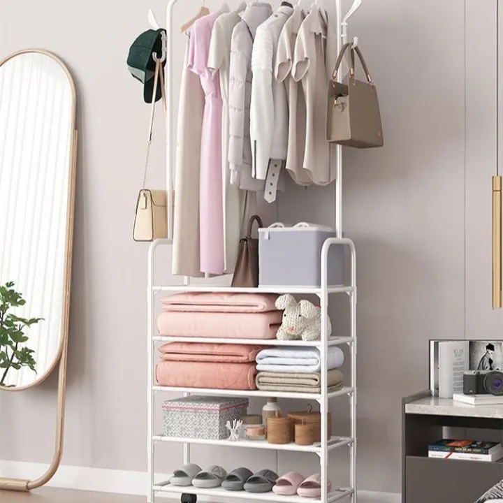 • Home Clothes Storage Racks Drying Floor Rack for Shoes Standing Coat Rack Garment Furniture Rack Wardrobe Garment Clothes ShelveFeatures1.A concise and practical clothes rack for indoor or outdoor use