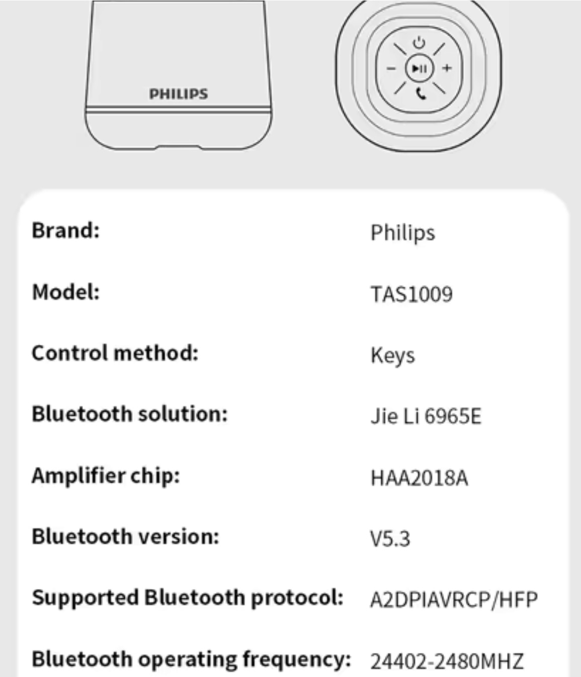 New Philips TAS1009 Mini Speaker Wireless Bluetooth 5.3 Small Portable Loudspeaker HiFi Stereo Voice Box 1200mAh Long Standby