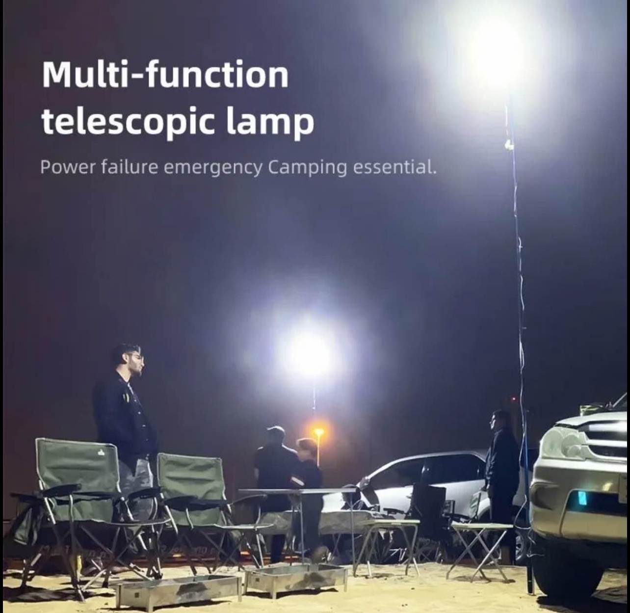 Portable Telescopic Light Outdoor Camping LED Lantern Rod DC 12V 500W LED Rechargeable Fishing Lights Feature: 1. For outdoor activities, such as fishing, hiking, camping or traveling, this lighting tool is quite a must have. This lamp, due to its particular design, will bring you more convenience than ordinary ones. 2. The retractable design makes the lamp flexible to use, and it won’t take up too much space when not in use. And its height also can be adjusted as needed. 3. This light can emit the bright and soft light, which can easily guide your directions in the darkness, which is very practical. 4. It can be connected to car battery or any 12V battery for charging, very convenient..