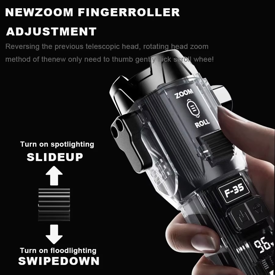 Home » XIWANGFIRE F35 LED Flashlight Dual Light Source Slide Zoom Tactical Torch Built-in 1800mAh Battery Rechargeable Emergency Torch